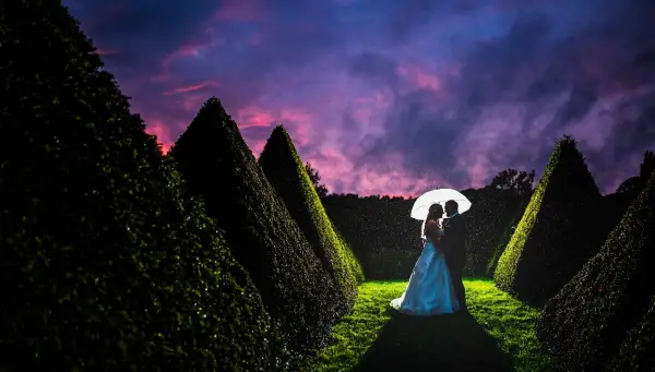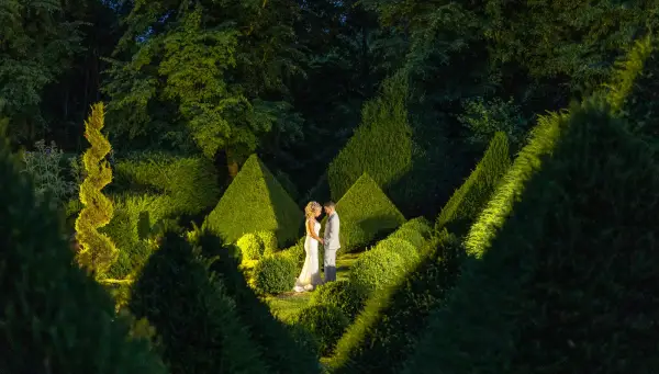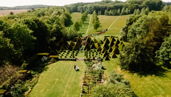 Like something out of Alice in Wonderland, the forest of 33 random pyramids makes a surreal frame to the traditional English garden of the pyramid lawn. Completely unique in the gardening world, this breathtaking installation, gives a huge wow factor to your magical moment.